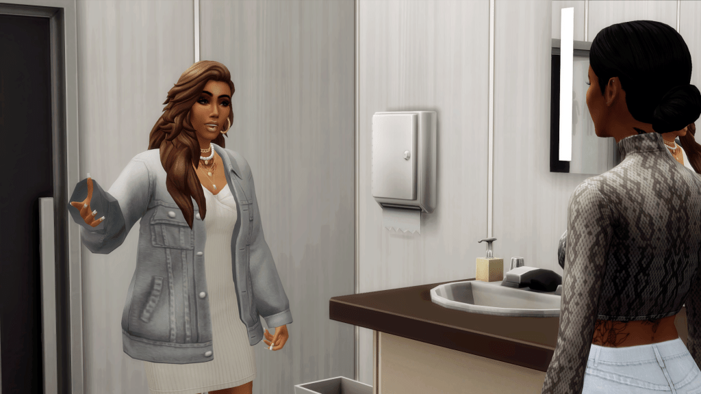 “Did you just ambush me?” Emilene asked, still startled that this girl followed her into the restroom.