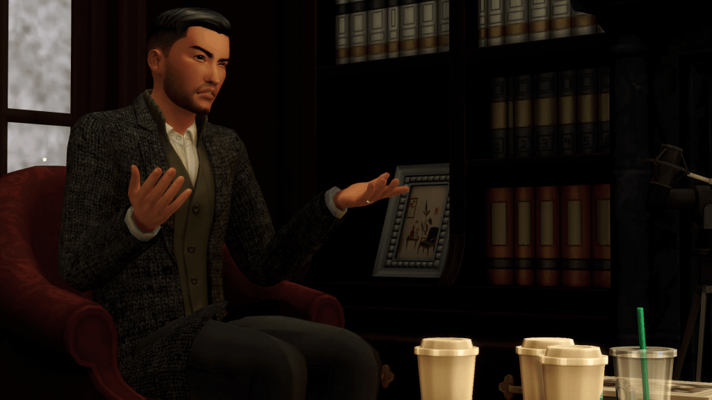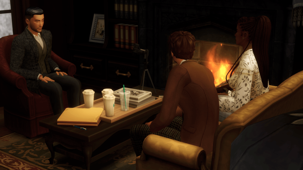 Upon touching down in San Myshuno, the group immediately rushed to the only place they knew to be a safe space for the Olivares and the Satos. The investigators rented out the cheapest room in The Oracle, which still ran them a pretty penny. Maverick showed Bianca how to do a typical pre-interview room sweep which including checking for hidden cameras, two way mirrors and soundproofing. Then, setting up their own tools.