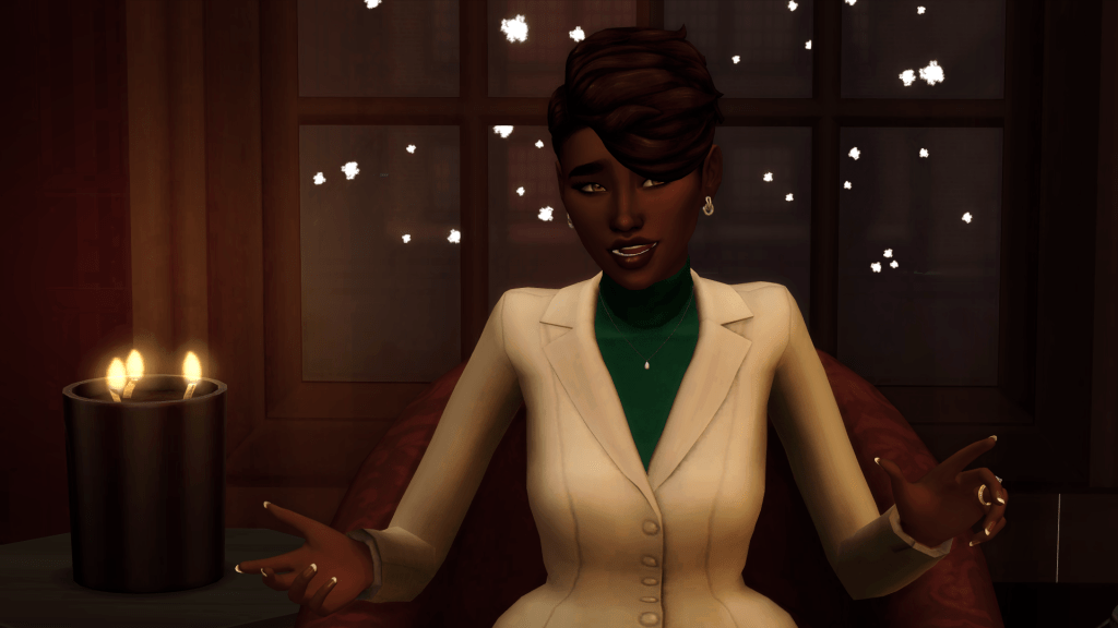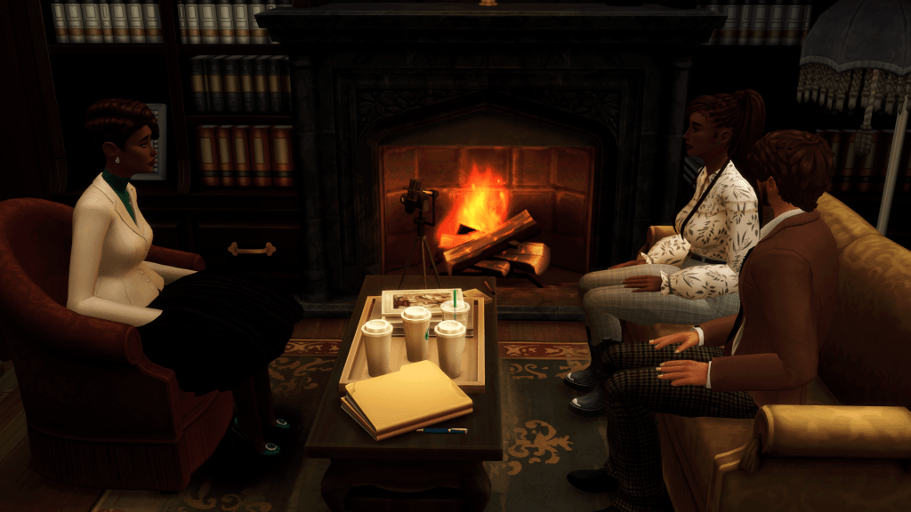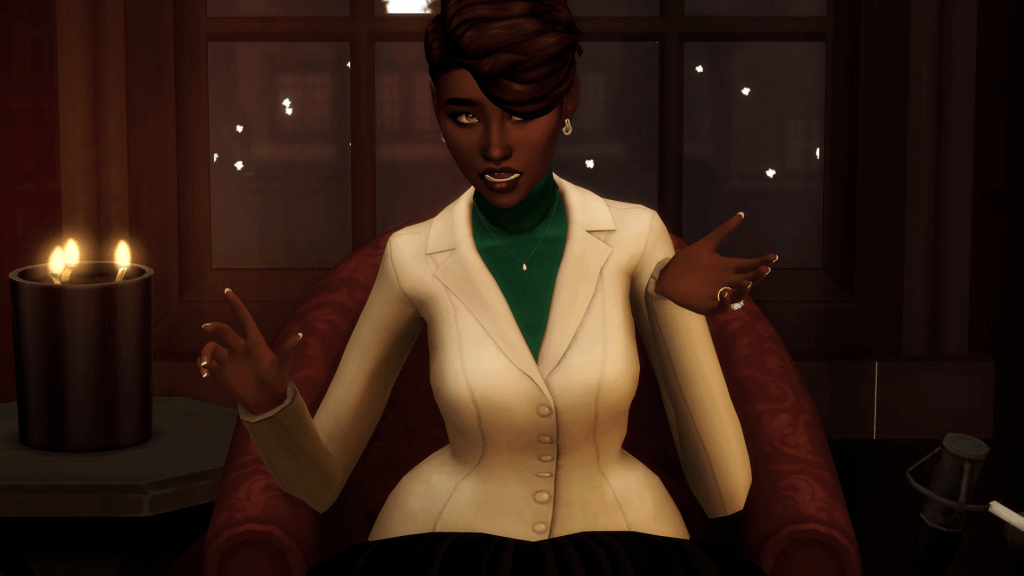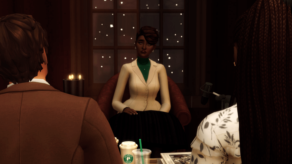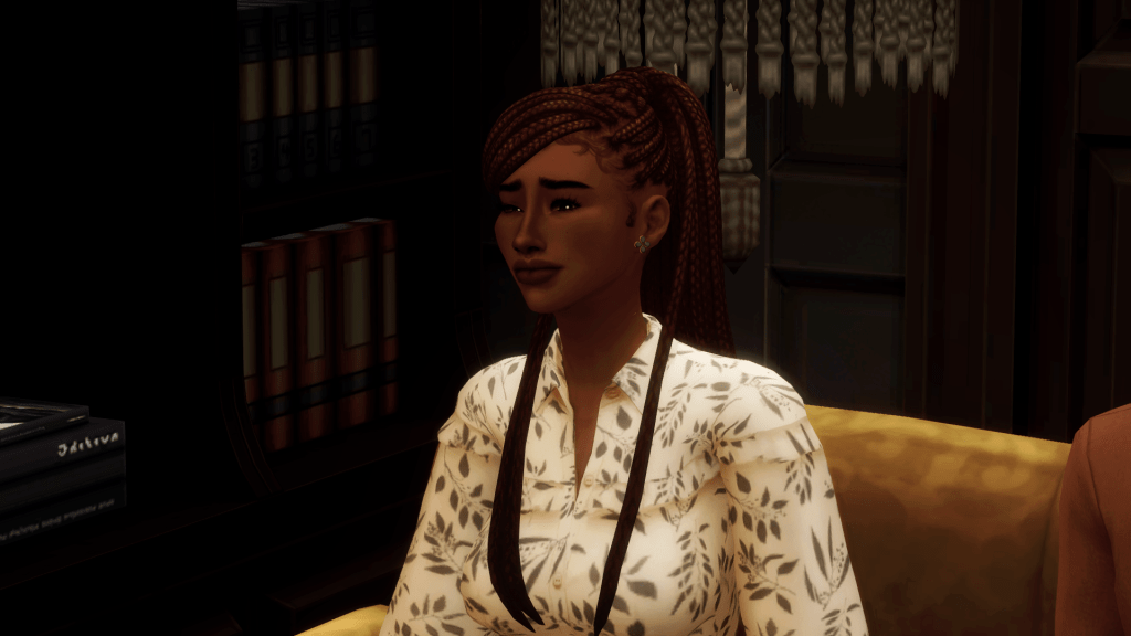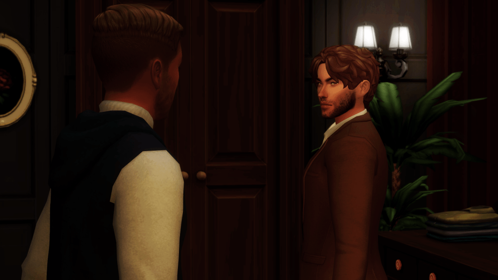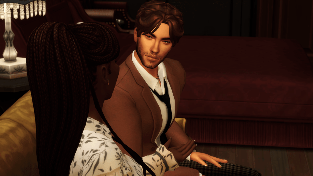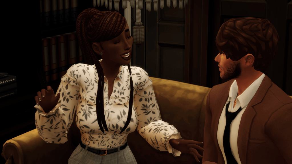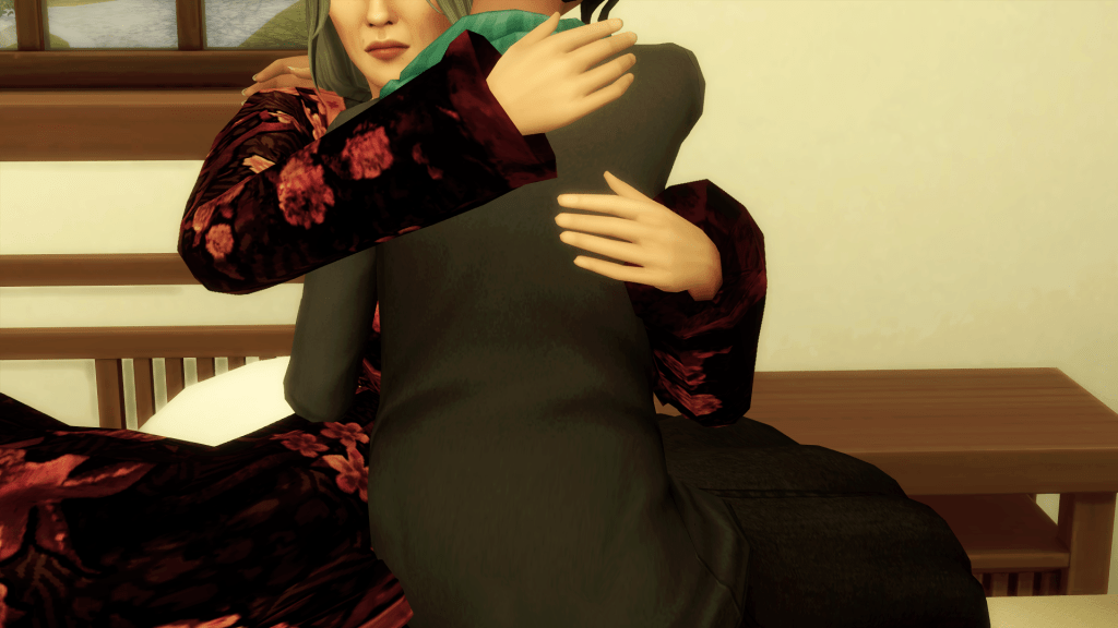 The couple allowed Marlene to make her way through the doors and back into the busy San Myshuno streets before huddling.