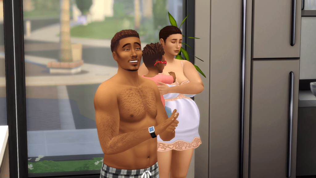 Thank Plumbob that Amaris is away at his mother’s so he can’t see what his parents are doing with his stuff.